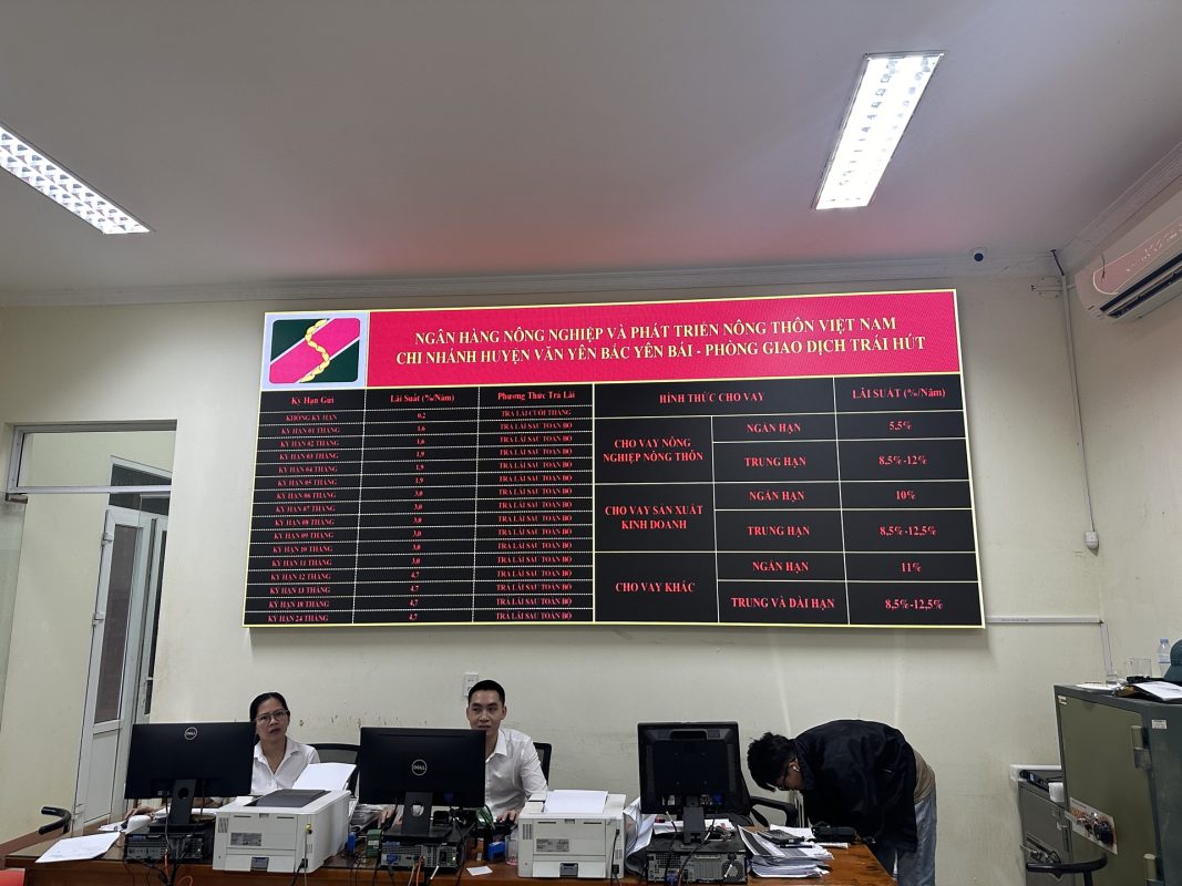 Ngân hàng Agribank Lục Yên Yên Bái | Lắp Đặt Màn hình LED P2.5 Trong Phòng Giao Dịch Chạy Thông Tin.